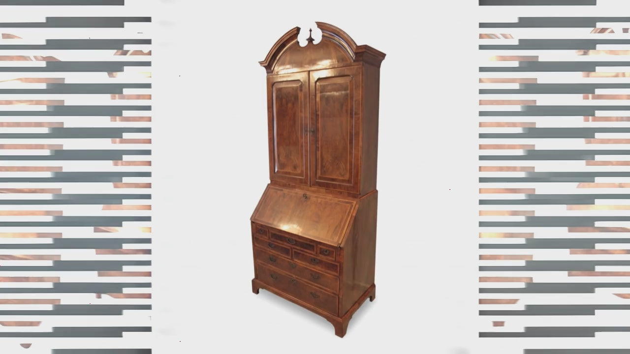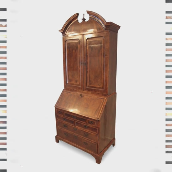 Das obere Cymatium ist mit zwei einfachen Voluten verziert, die eine elegante zentrale Feder umrahmen. Nach unten hin werden die Schubladen im traditionellen englischen Stil immer kleiner und sind mit seitlichen Griffen versehen. Das Möbelstück ist mit Bruyèrewurzelholz verkleidet, was eine starke visuelle Wirkung erzeugt, und seine dekorative Wirkung steht in harmonischem Kontrast zur Schlichtheit der Volumen, die außerdem durch eine helle Holzverkleidung definiert wird, die alle Elemente des Trumeaux geometrisch umrahmt. Die interne Struktur ist ebenso raffiniert; Das Klappverdeck, ein charakteristisches Merkmal der Trumeaux mit Klappverdeck im Louis XVI-Stil, lässt sich leicht öffnen und in einen Schreibtisch verwandeln, der von stabilen, einziehbaren horizontalen Stützen getragen wird. Dieses faltbare Fach enthält zahlreiche Schubladen und Papierhalter sowie ein praktisches Geheimfach, das über eine weiter oben angebrachte, falsche zentrale Schublade zugänglich ist. Der Schrankaufsatz bietet zusätzliche Schubladen und Stauraum und macht ihn somit nicht nur zu einem prachtvollen Möbelstück, sondern auch äußerst funktional.