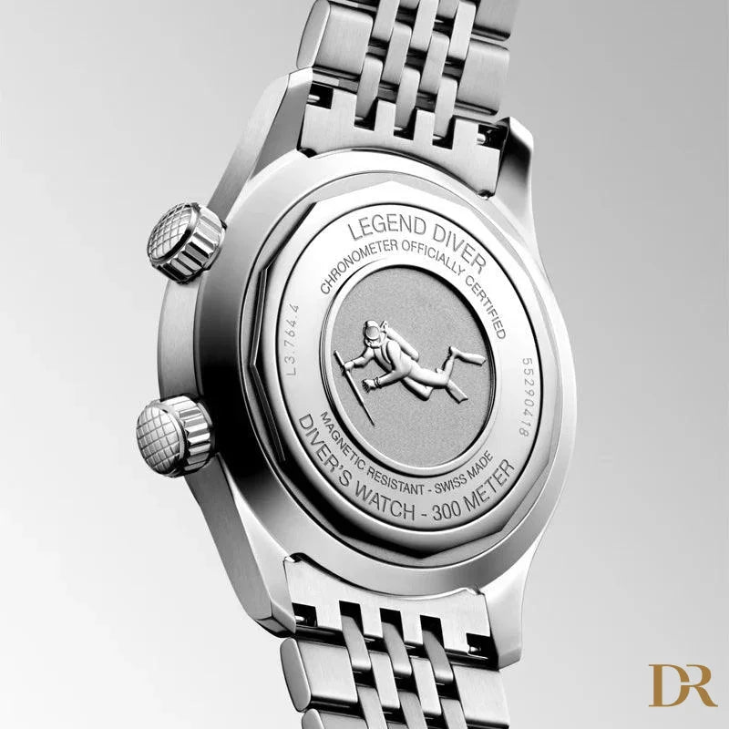 È immediatamente riconoscibile grazie alle due corone e alla lunetta girevole interna. Il nuovo LONGINES LEGEND DIVER viene riproposto con un diametro da 39 mm, fedele al modello originale del 1959 a cui si ispira.