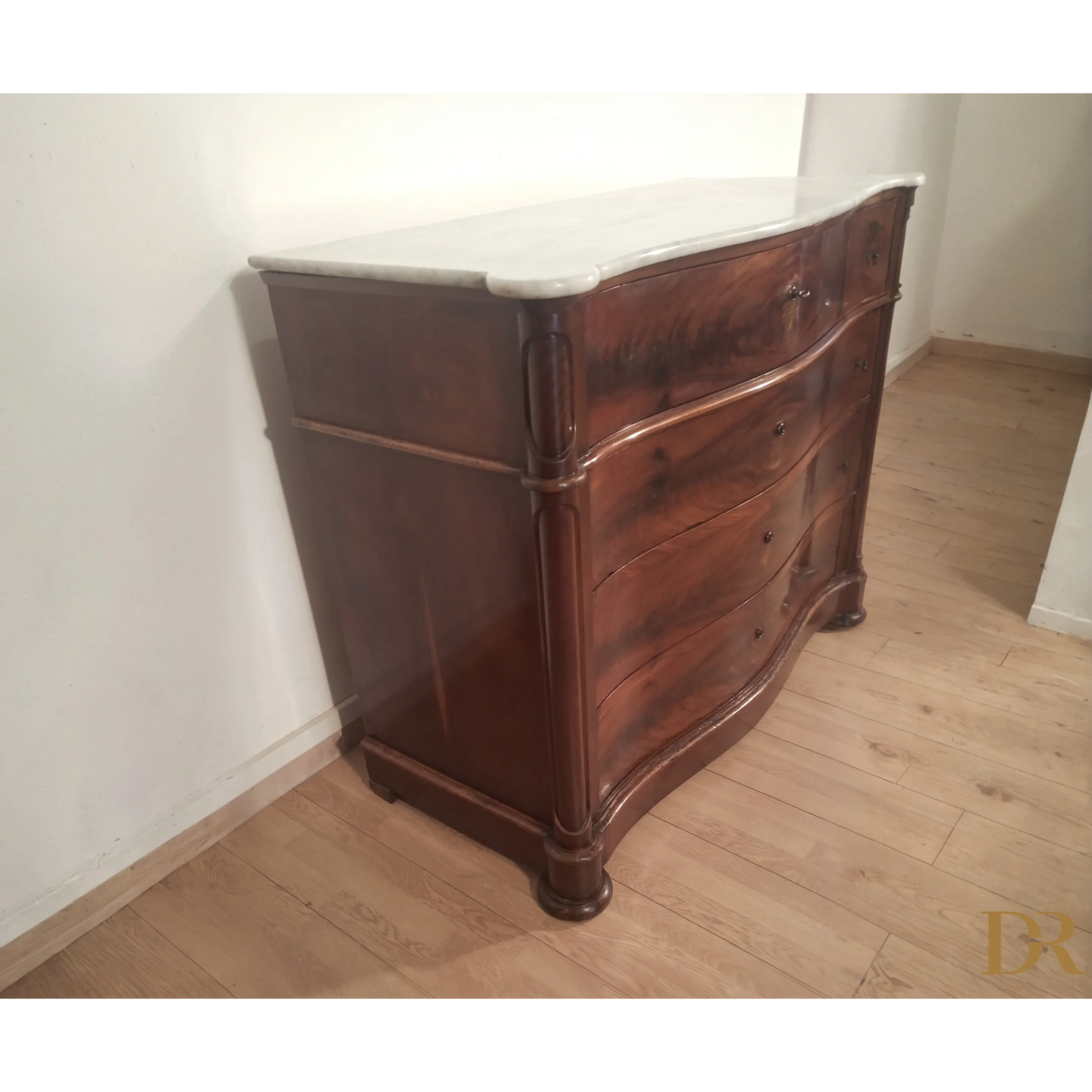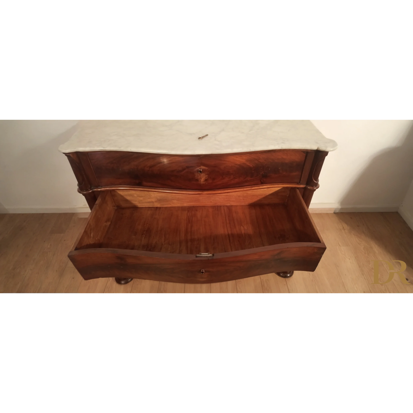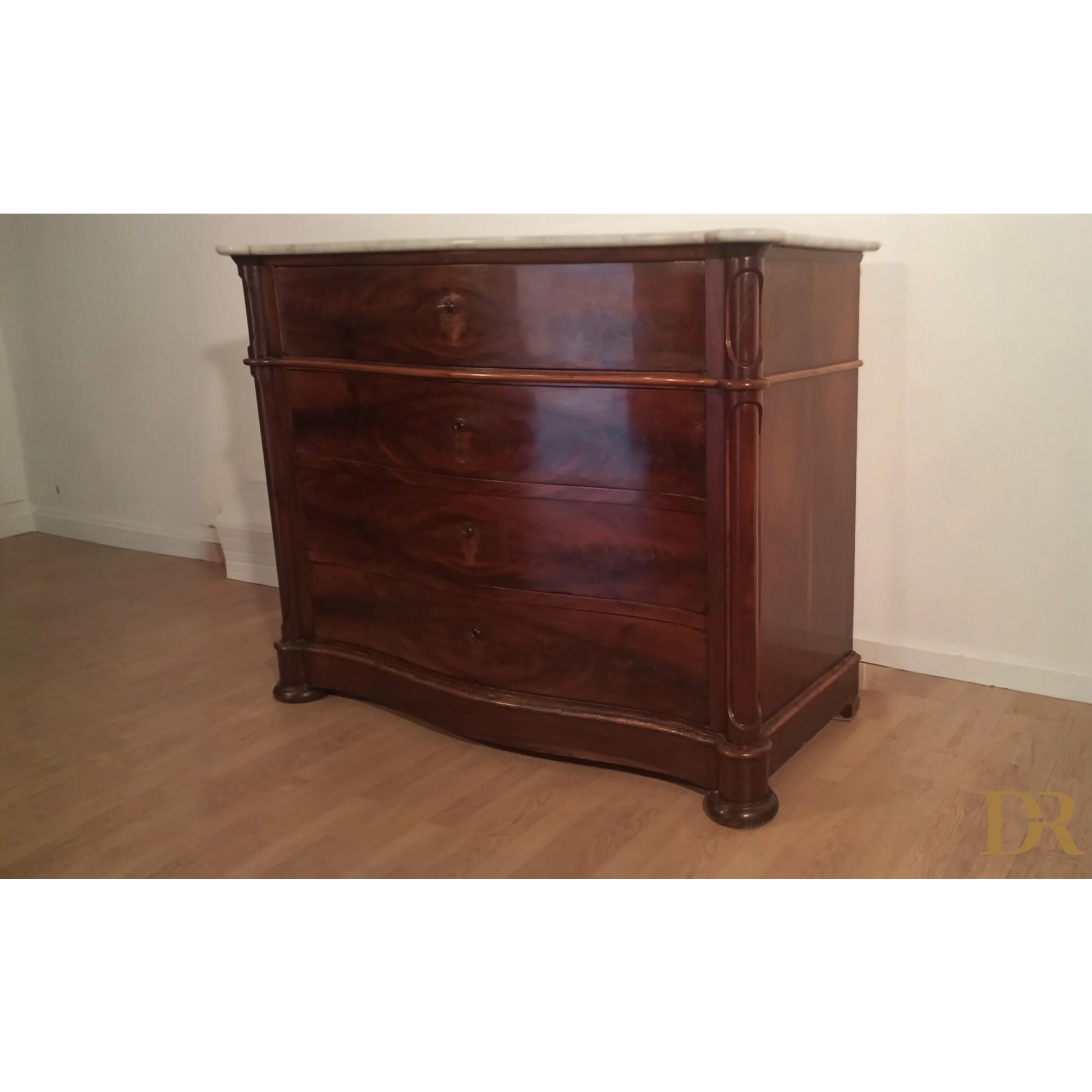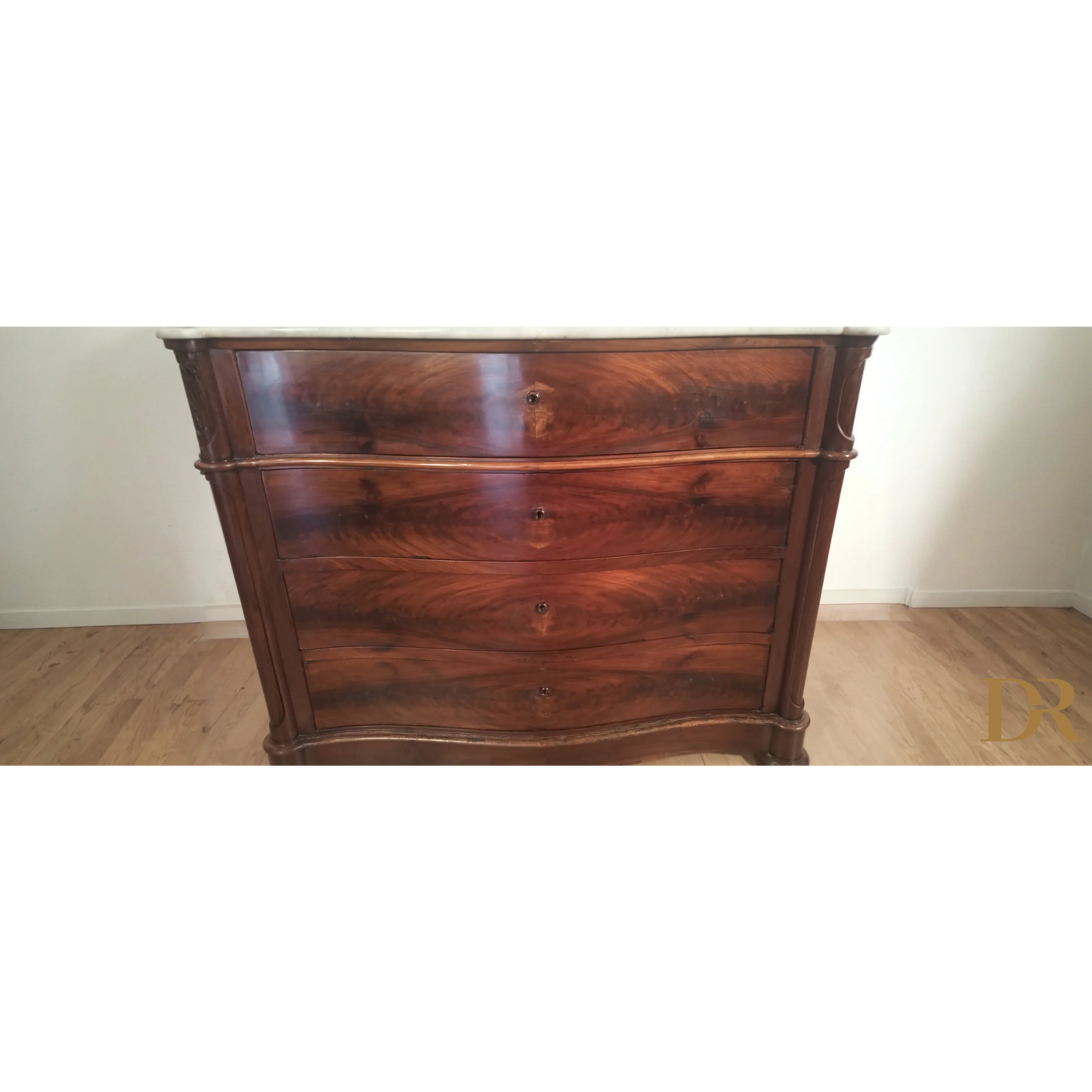 Cómoda Louis Philippe de caoba con tapa de mármol, siglo XIX