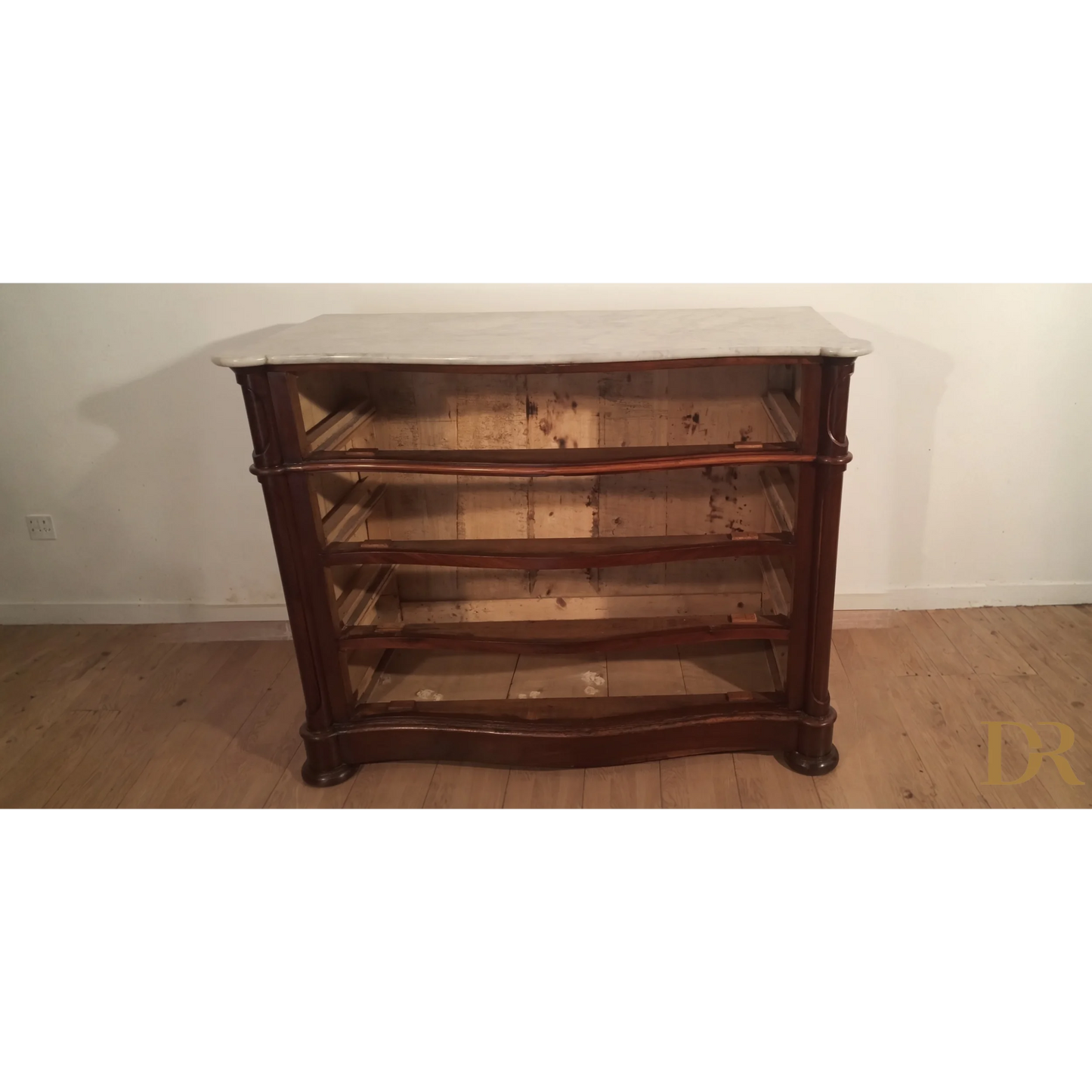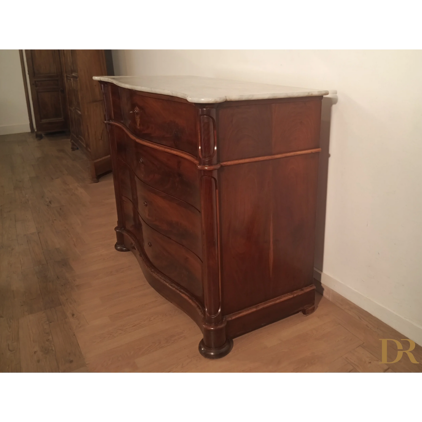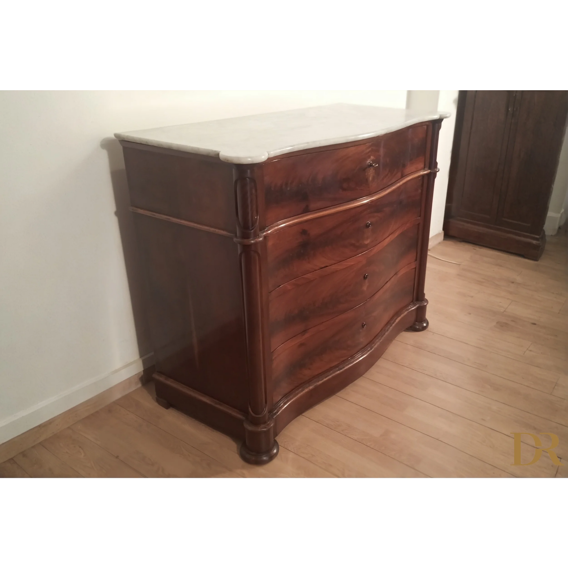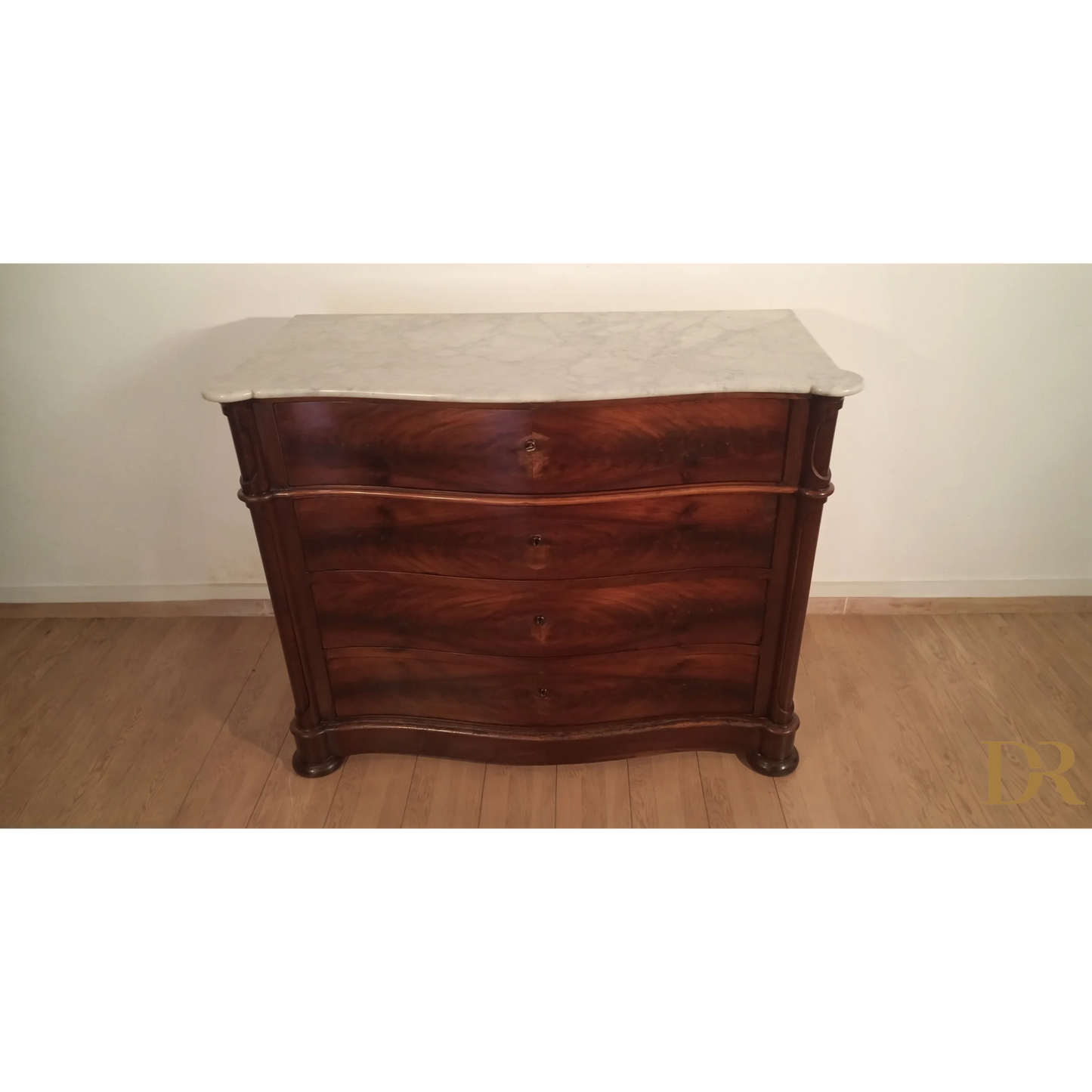 Cómoda Louis Philippe de caoba con tapa de mármol, siglo XIX