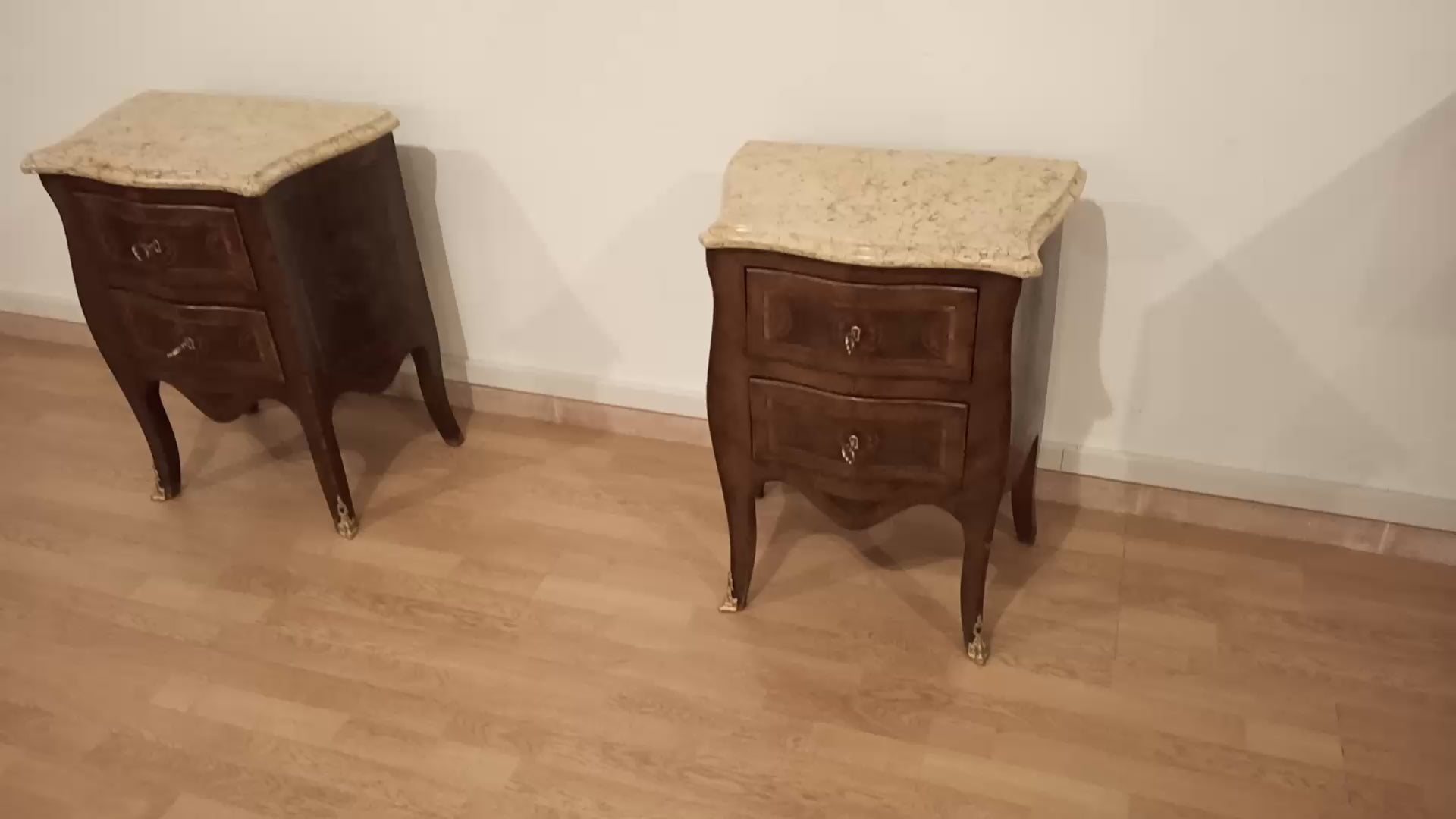Coppia comodini in stile Luigi XV in bois de rose intarsiati - Restaurati