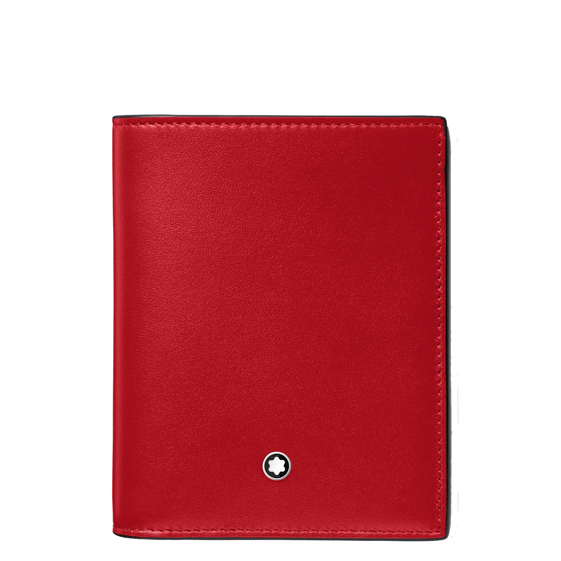 Il portafoglio compatto Meisterstück con sei aperture per carte di credito è realizzato in una nuova tipologia di pelle corallo estremamente lucida. Il nuovo design interno geometrico e lineare ne sottolinea l’essenza funzionale, con più aperture per carte di credito e tasche per contanti e ricevute. Questo portafogli può essere portato comodamente con un laccetto da collo (venduto separatamente) o riposto in tasca.