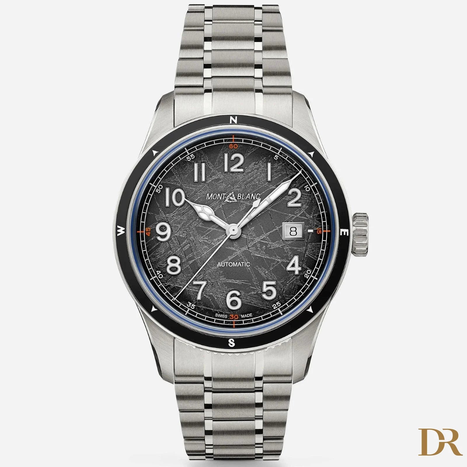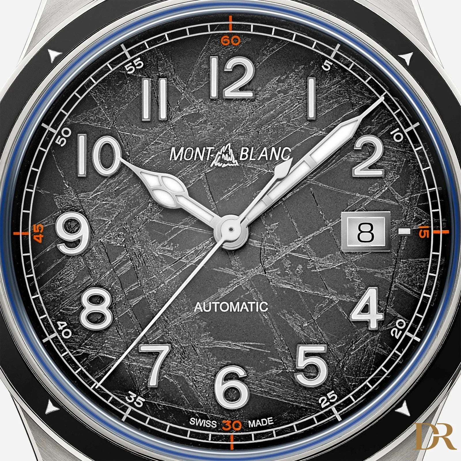 Rendendo omaggio alle vette più alte del mondo e agli alpinisti che osano scalarle resistendo a condizioni estreme, il Montblanc 1858 Automatic Date 0 Oxygen The 8000 è alloggiato in una cassa in acciaio pregiato da 41 mm totalmente priva di ossigeno. Questa innovazione comporta diversi vantaggi per gli esploratori, in quanto elimina l'appannamento e previene l'ossidazione, consentendo ai componenti del movimento di durare più a lungo con una precisione ancora più accurata. Il segnatempo è animato dal calibro automatico MB 24.17 ed è dotato di lunetta in ceramica nera con punti cardinali luminescenti, quadrante grigio scuro Sfumato con motivo “ghiacciaio” e tocchi arancioni, luminescenza blu e fondello con incisione del motivo “Spirit of Mountain Exploration”. Come gli altri modelli di questa capsule collection, il Montblanc 1858 Automatic Date 0 Oxygen The 8000 è corredato da un bracciale intercambiabile in acciaio pregiato con conicità e regolazioni raffinate.