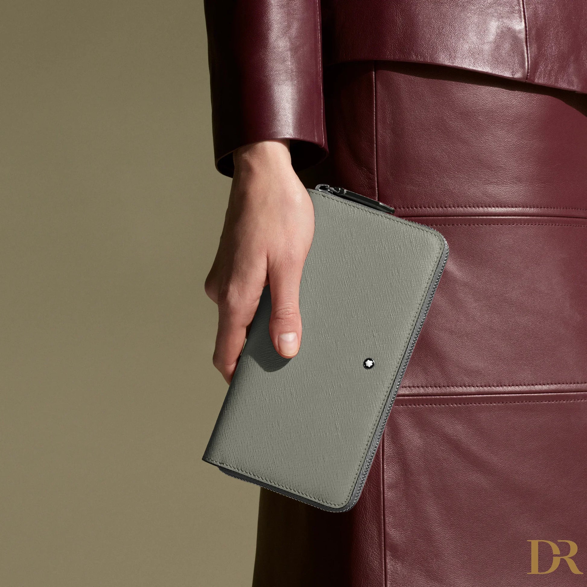 Questo portafoglio in pelle stampa Saffiano grigio medio è un accessorio versatile con numerosi dettagli funzionali. Oltre alle 12 aperture per carte di credito, presenta tre scomparti per banconote, un portamonete con cerniera e tre tasche aggiuntive per altri piccoli oggetti.