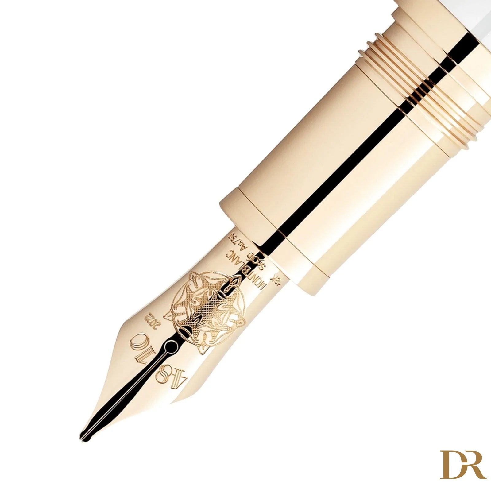 Nel 2022, la Montblanc Patron of Art Edition è dedicata alla Regina Vittoria e al Principe Alberto. La Limited Edition 4810 è una splendida edizione doppia: una rende omaggio alla Regina Vittoria, l’altra al Principe Consorte Alberto. La Montblanc Patron of Art Homage to Victoria Limited Edition 4810 celebra la giovane Vittoria e presenta un corpo in lacca di colore bianco perlato e un cappuccio in lacca verde menta traslucida con un motivo vittoriano al di sotto. Le finiture sono in oro esclusivo. La forma della clip è un tributo al suo scettro, mentre la gemma sintetica color verde scuro rende omaggio al suo anello di fidanzamento. La parte superiore del cappuccio è ispirata alla corona reale ed è ornata dall’emblema Montblanc in pregiata resina bianca. L’anello del cappuccio reca incisa la dicitura “I will be good”, mentre il cono è decorato da una speciale incisione. In omaggio al soprannome di Vittoria - “England's rose” (Rosa d’Inghilterra) - il pennino in oro massiccio Au 750 lavorato a mano reca la goffratura di una rosa. Con oro esclusivo e/o rivestimento in oro esclusivo, Montblanc descrive la tonalità luminosa di oro giallo che è diventata un simbolo degli strumenti da scrittura della Maison.
